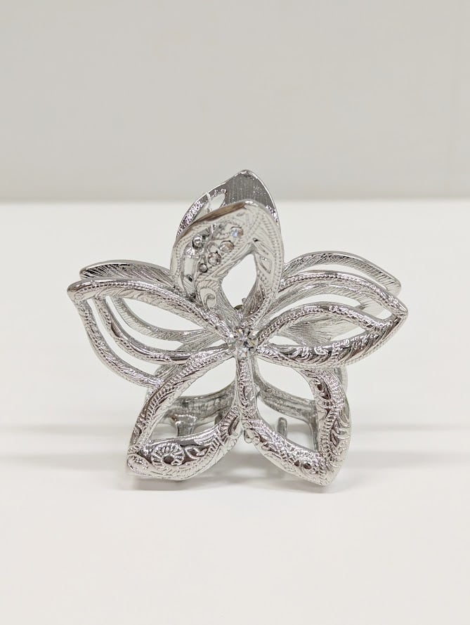 ハワイアンジュエリーのような彫りが施されたプルメリアのヘアクリップ☆