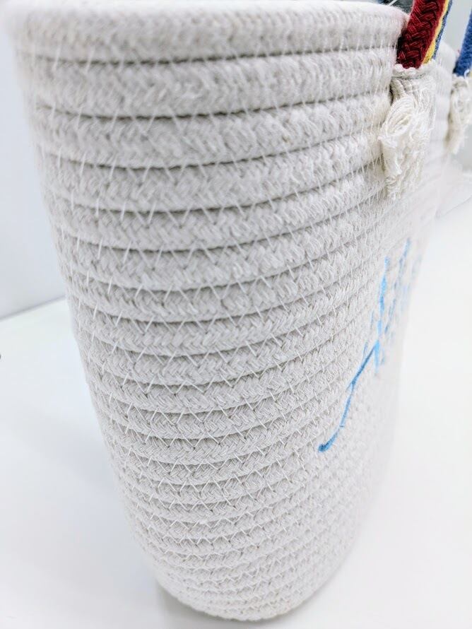 白のフリンジの部分が雲を連想させ、色合いもカラフルで気分が上がるバッグです。軽くて使いやすく、500mlの水筒もすっぽり入る大きさです。
