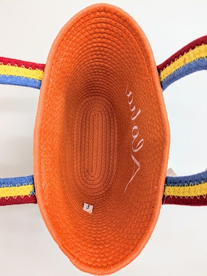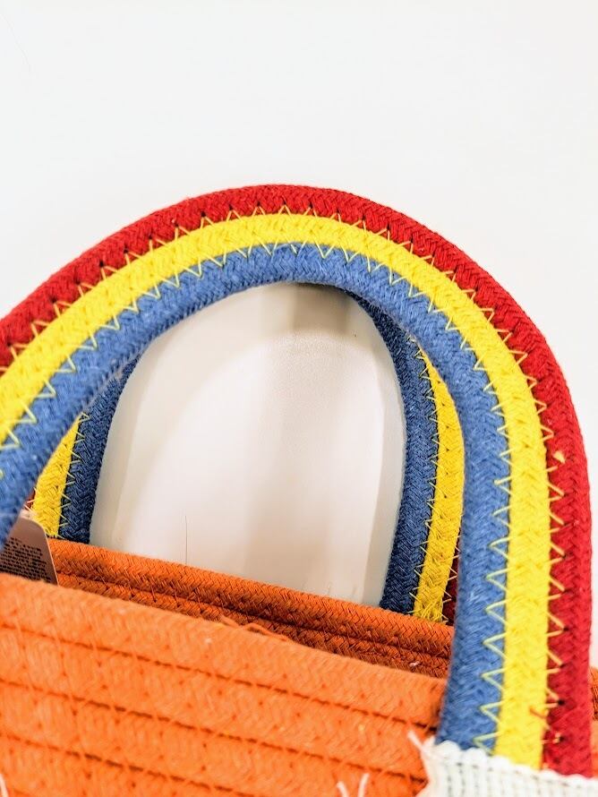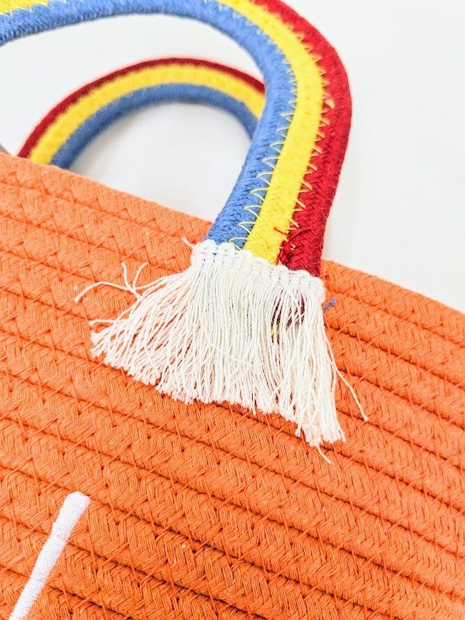 白のフリンジの部分が雲を連想させ、色合いもカラフルで気分が上がるバッグです。軽くて使いやすく、500mlの水筒もすっぽり入る大きさです。