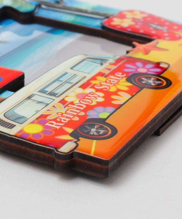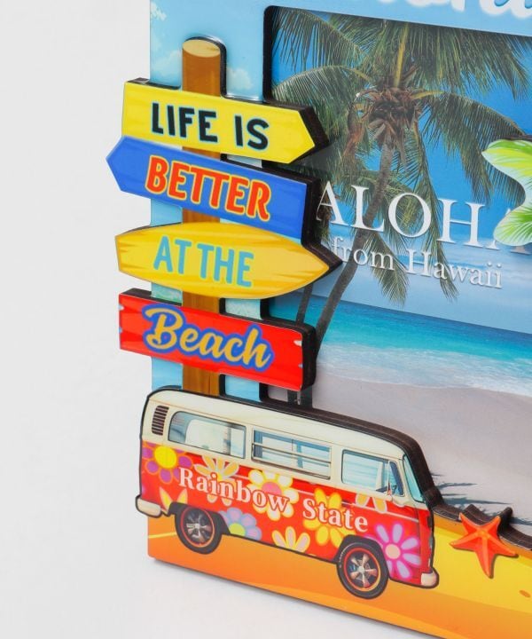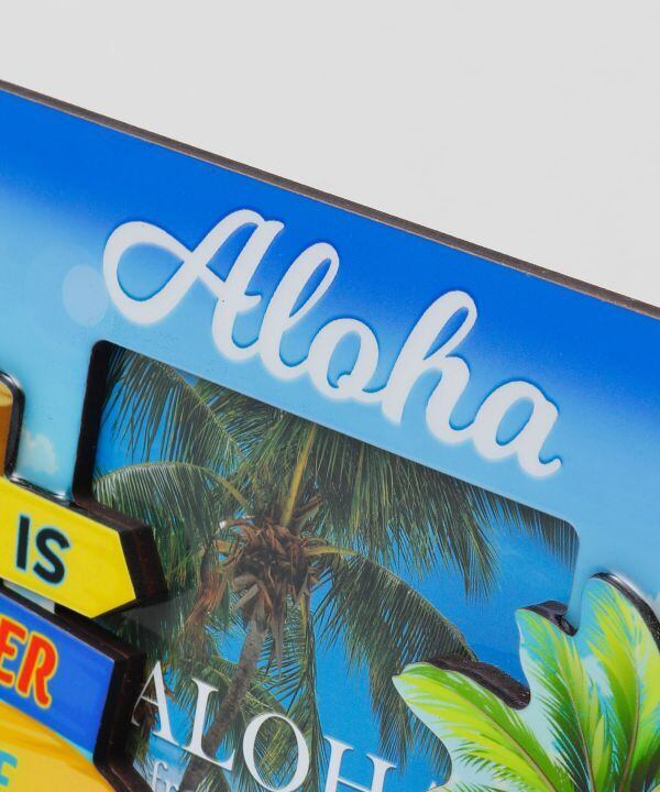 サーフボード型の看板や、カラフルなサンダル、ヤシの木など、ハワイらしいモチーフが立体的にデザインされています。お気に入りの写真を飾るだけで、お部屋が一気にハワイの雰囲気に。思い出を飾るだけでなく、インテリアとしても楽しめます。