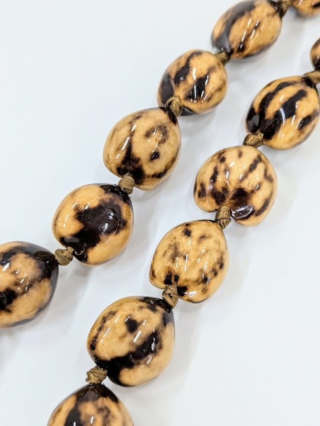 ハワイ州のシンボルツリーでもあるククイナッツは、男女問わずフラダンサーには欠かせないアイテム。タイガー模様のククイは存在感を与えてくれます。フラの時だけでなく、ワンピースなどと合わせて普段使いとしてもおすすめです。