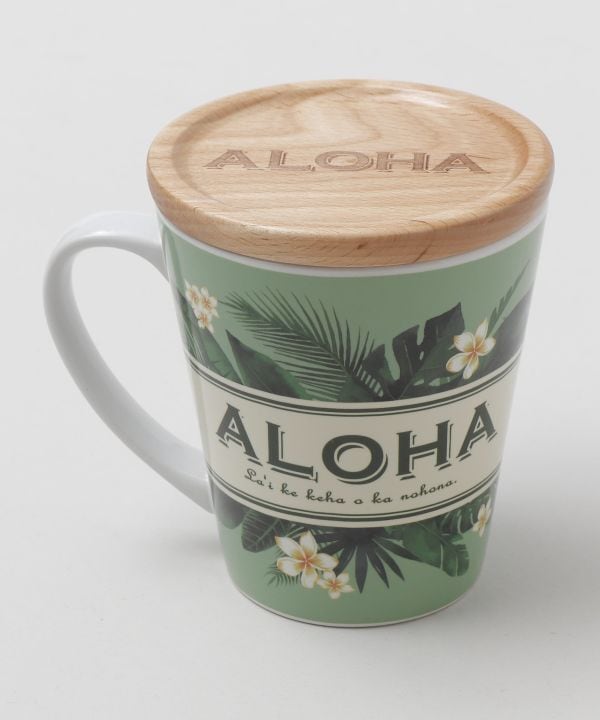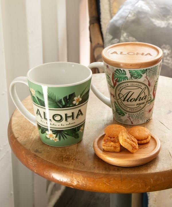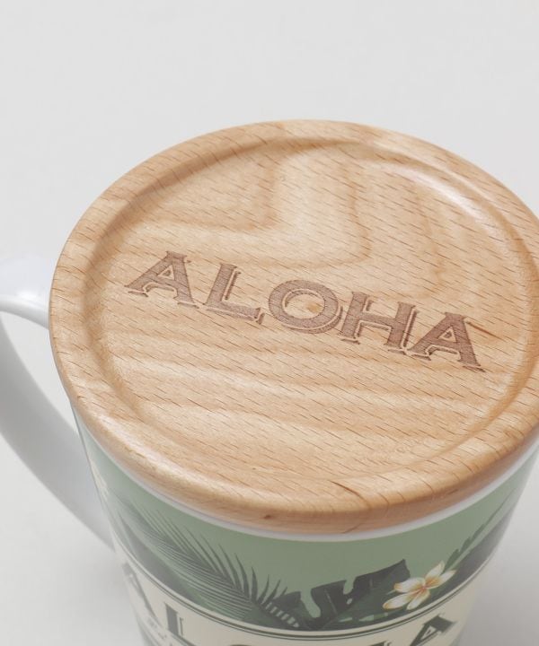 ハワイを感じる爽やかなデザインのふた付きマグカップ。