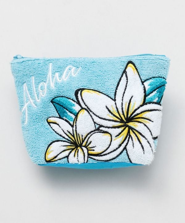 まるでハワイの風を感じる、プルメリアのサガラ刺繍が可愛いポーチです。