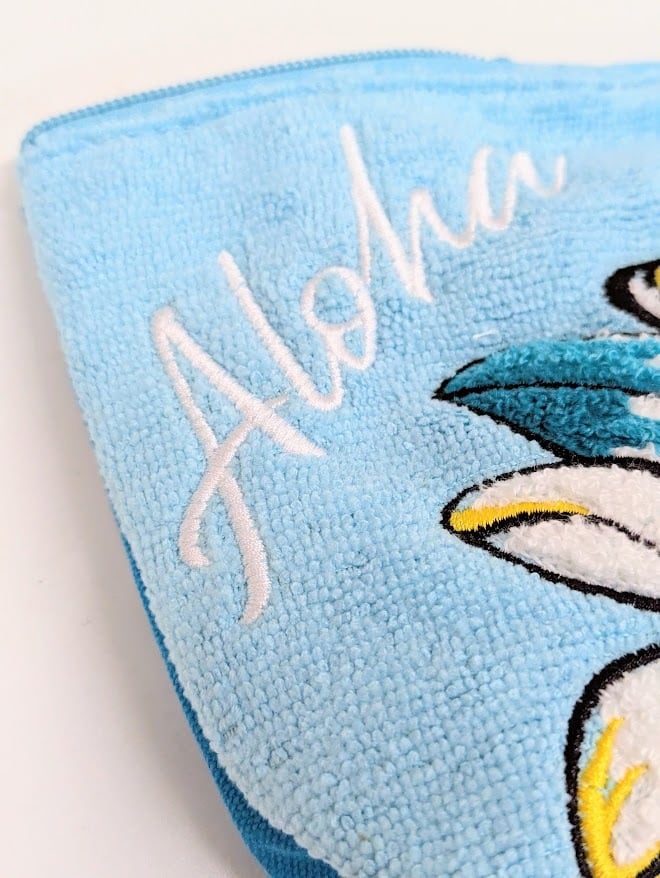 ハワイを代表するモチーフを立体感のあるサガラ刺しゅうで丁寧に表現したポーチ☆