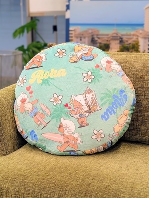 サーフィンとファッションを愛する365日ハワイを感じられるキャラクター、ALOHA MAPUA(アロハマプア)の可愛らしいイラストのクッションです。