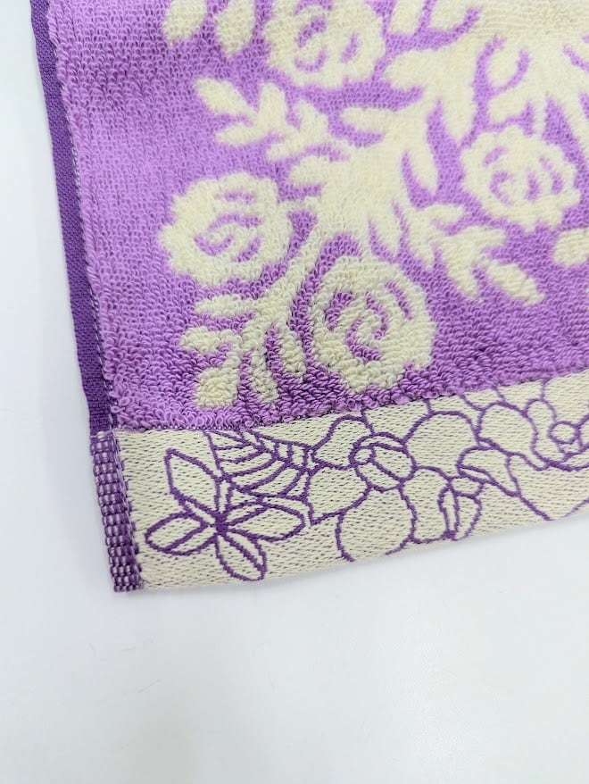 柄の部分は肌ざわりフワフワの無撚糸パイル、背景はさらっとした肌触りの撚糸パイルで、柄を鮮やかに表現しています。