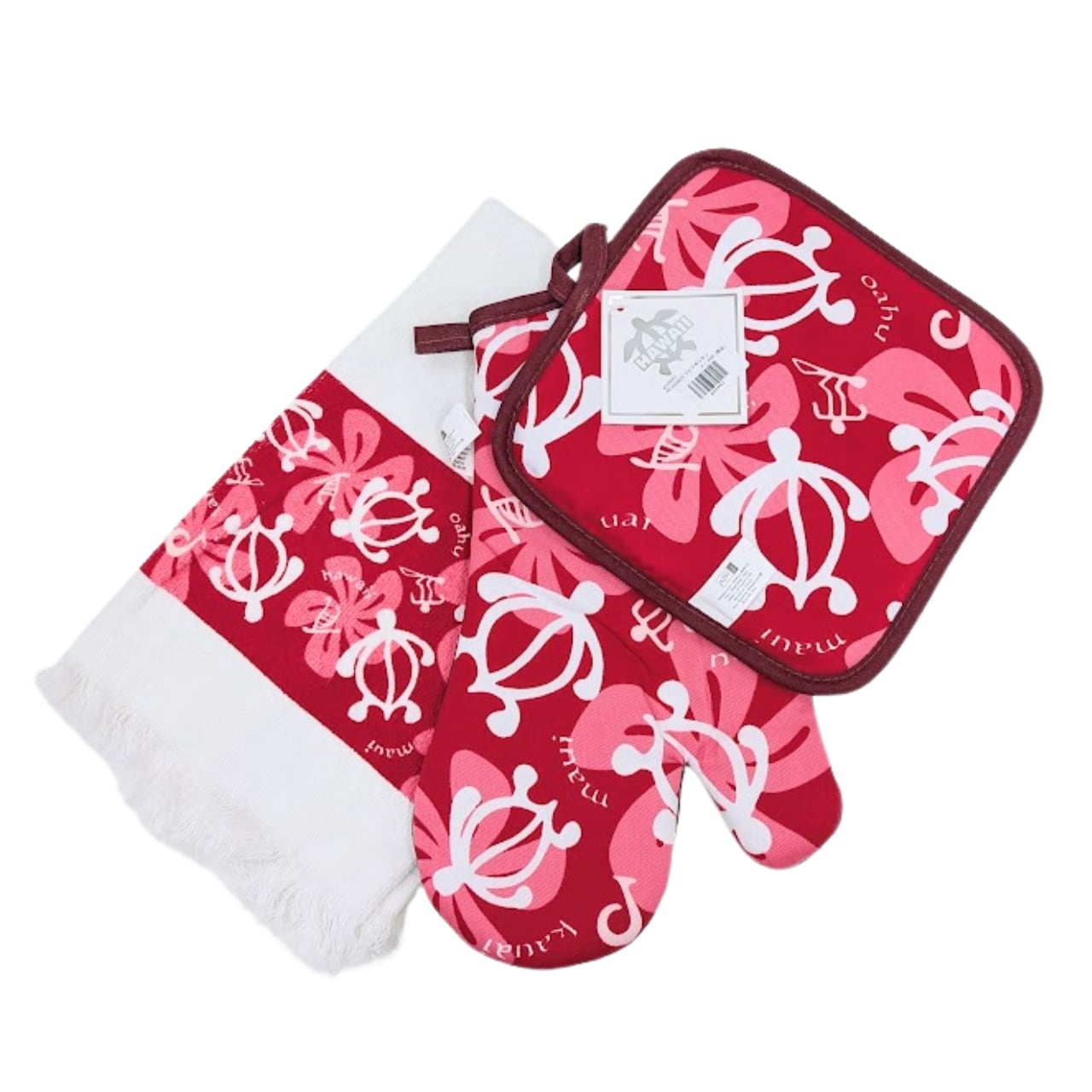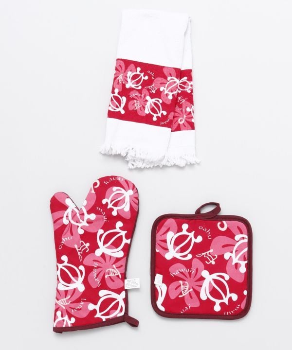 HAWAII直輸入!ホヌをあしらった、ミトン、鍋敷き、タオルの嬉しい3点セット☆