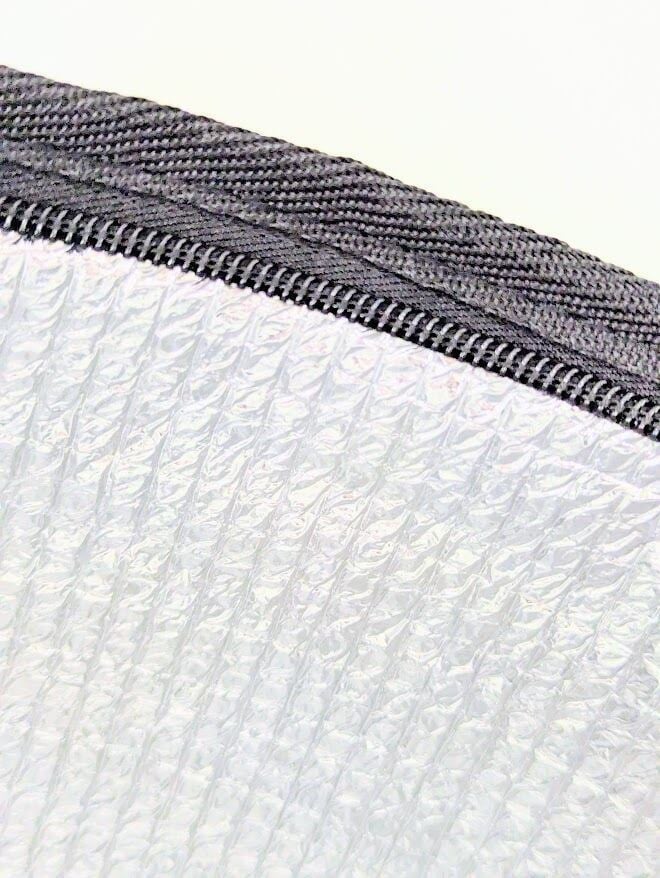 内側は銀マット張り。ファスナー開閉です。