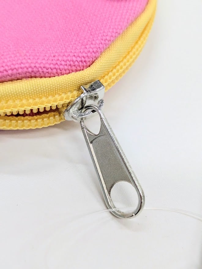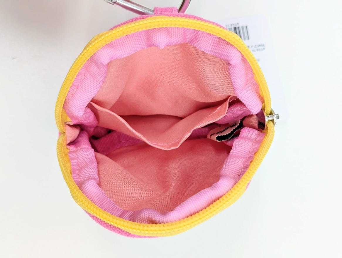 配色がかわいいカラビナ付きの丸形のポーチ☆