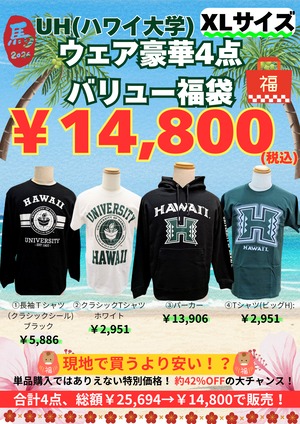 オンライン限定《2026年 福袋》UH(ハワイ大学)ウェア豪華4点バリュー福袋【XLサイズ】 14,800円
