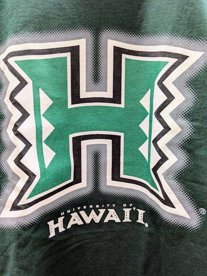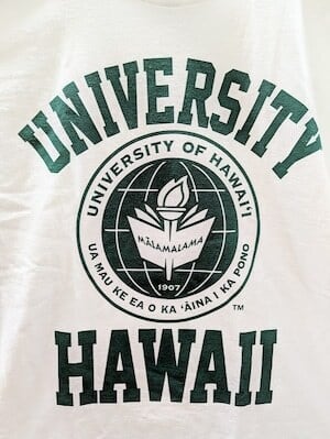 アメリカ合衆国ハワイ州の州立大学である、ハワイ大学の「UHロゴ」入りTシャツです。