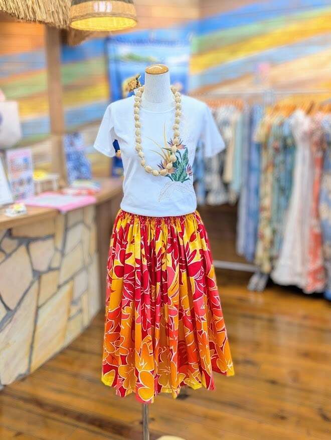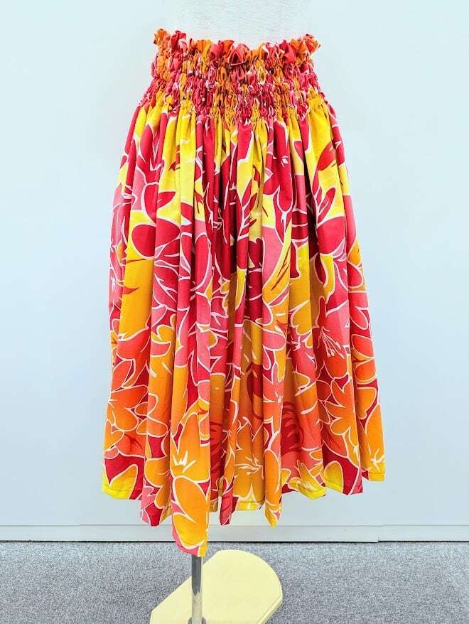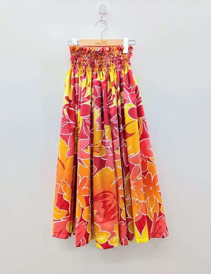 ●【Anuenue(Pau)】シングルパウスカート[オンブレ フローラル/オレンジ & レッド/ポリコットン]