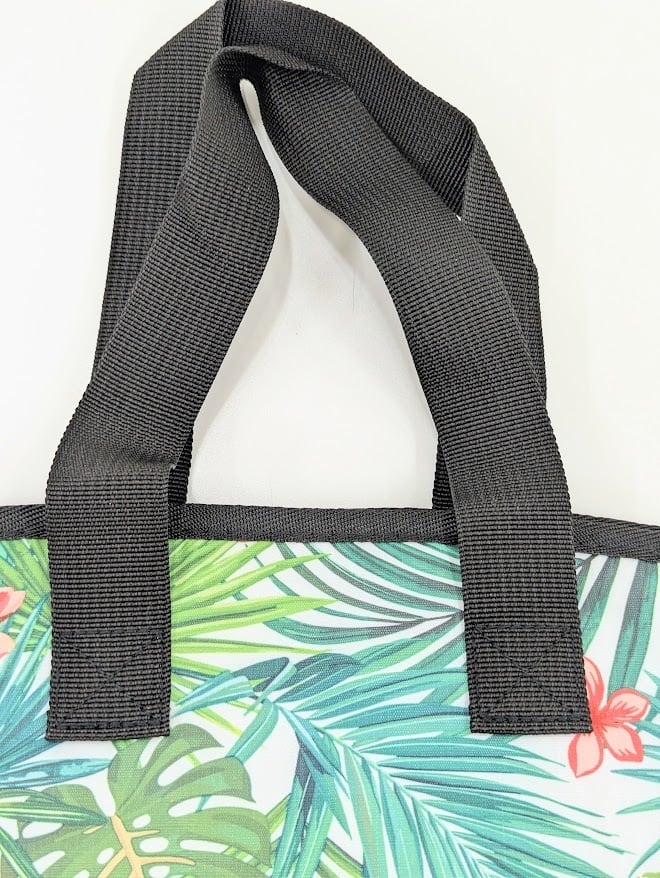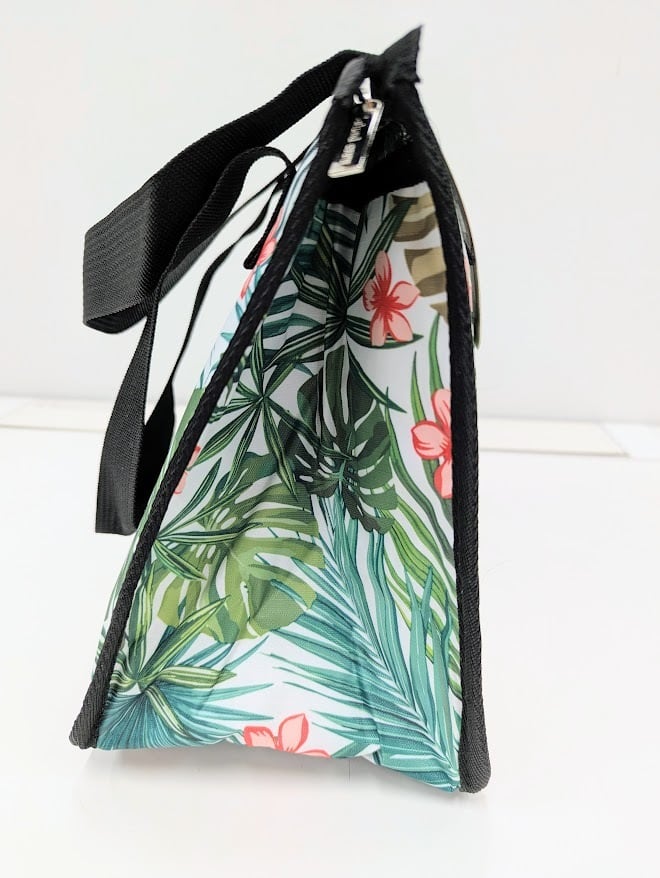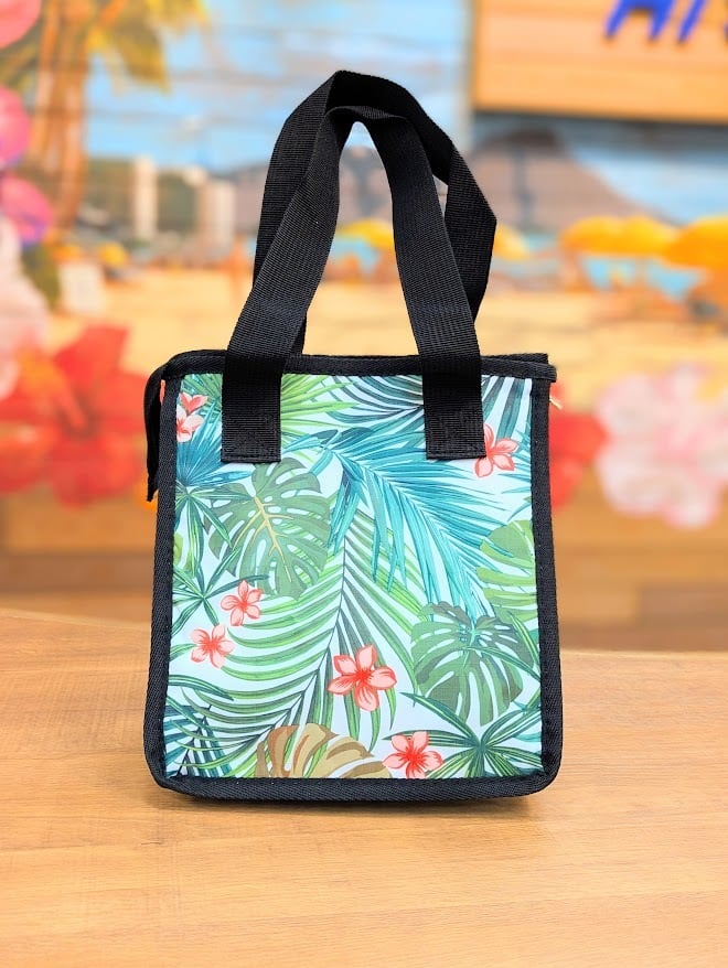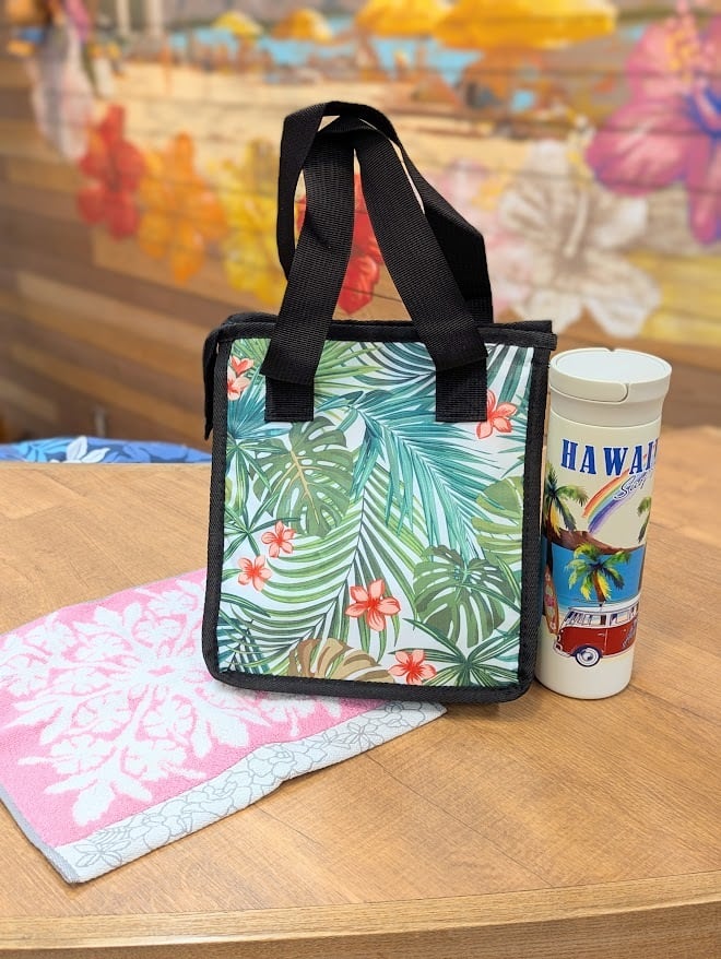お買い物にもレジャーにも使いやすい、マチ付きのクーラーバッグ。ハワイを感じさせる柄がモチーフになっているのがポイント。Sサイズはお弁当にぴったりのサイズ感です。