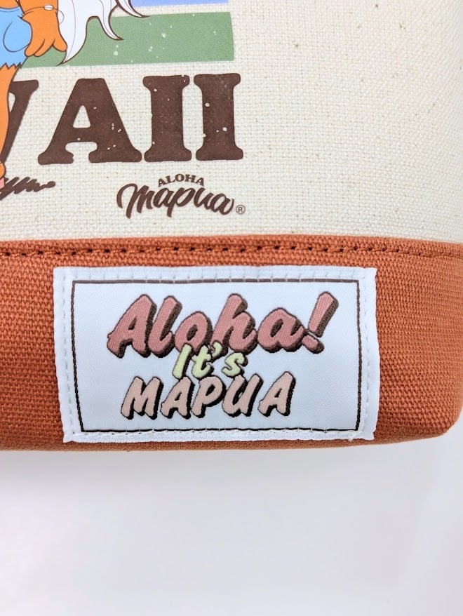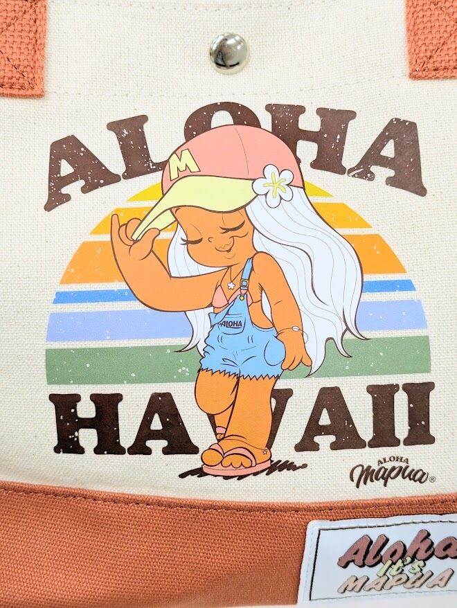 サーフィンとファッションを愛する365日ハワイを感じられるキャラクター、ALOHA MAPUA(アロハマプア)のデザイン。ょっとしたお出かけやランチバッグに最適なサイズ感。ハワイの陽気な雰囲気を感じるデザインで、持つだけで心も軽やかに。ナチュラルな綿素材が魅力。