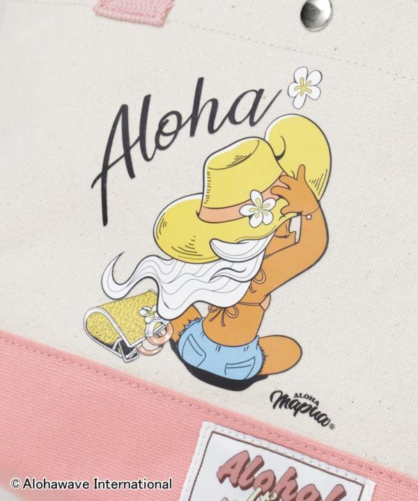 サーフィンとファッションを愛する365日ハワイを感じられるキャラクター、ALOHA MAPUA(アロハマプア)のデザイン。ょっとしたお出かけやランチバッグに最適なサイズ感。ハワイの陽気な雰囲気を感じるデザインで、持つだけで心も軽やかに。ナチュラルな綿素材が魅力。