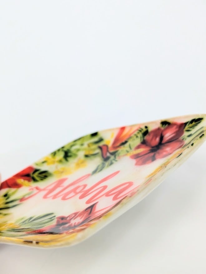 海でとれたカピス貝を加工し、プリントを施したミニトレイ☆