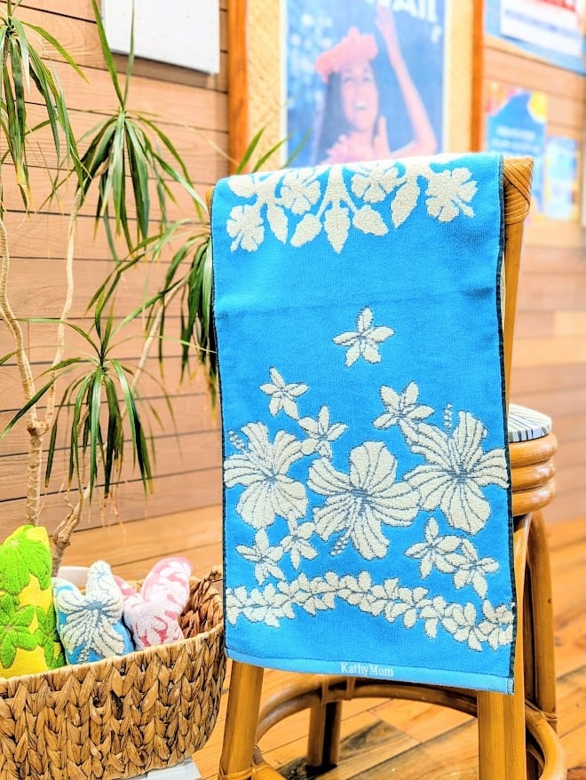 ハワイの代表的な植物をモチーフにしたハワイアンキルト柄のフェイスタオルです。