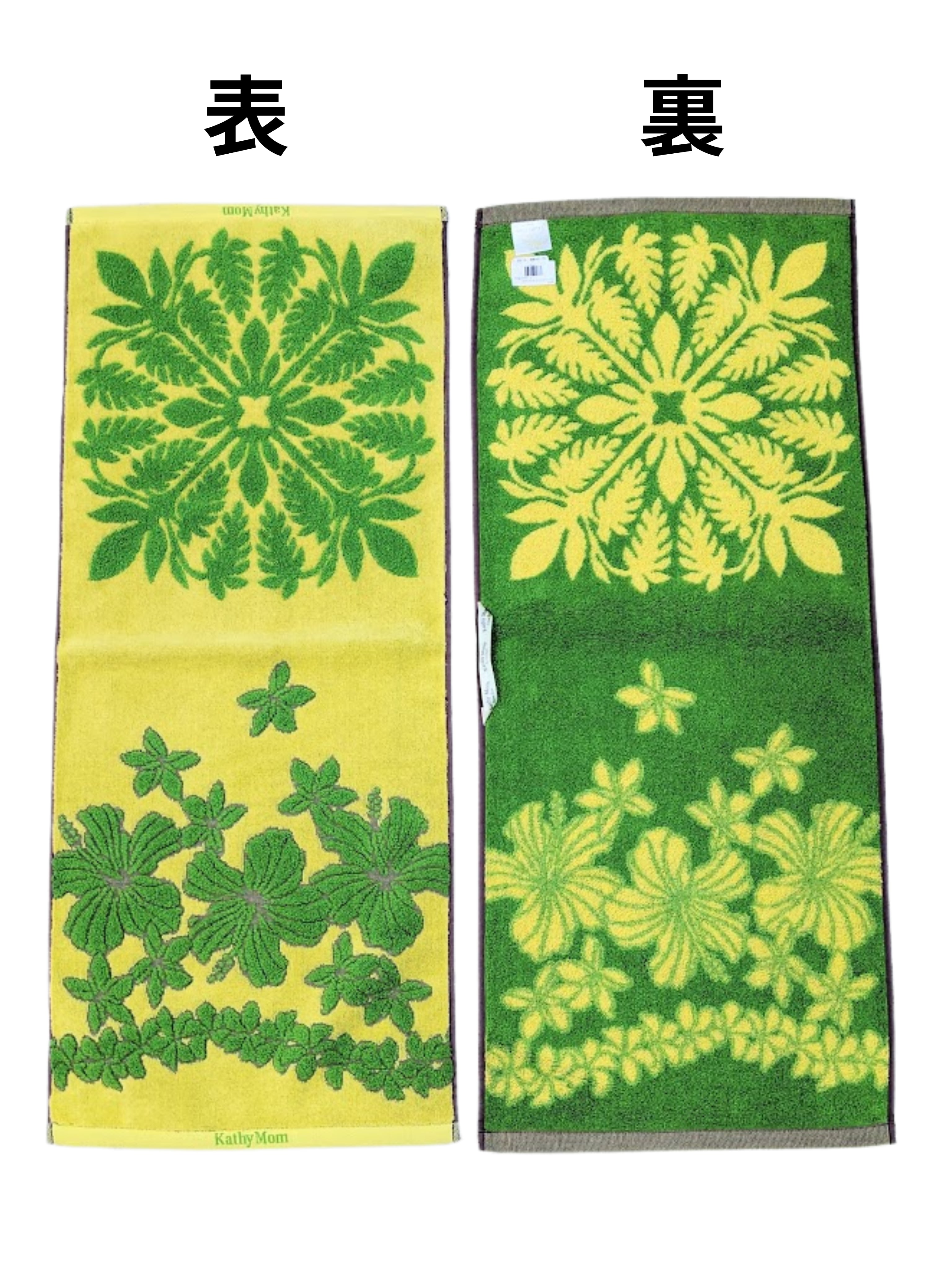 ハワイの代表的な植物をモチーフにしたハワイアンキルト柄のフェイスタオルです。