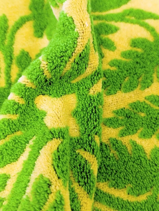 素材は吸水性抜群の綿100%。柄の部分には無撚糸を使用して