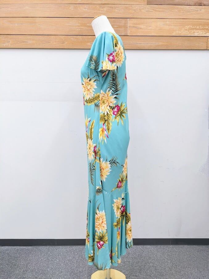 【Two Palms 】ハワイアンロングドレス [セレス/グリーン/レーヨン]