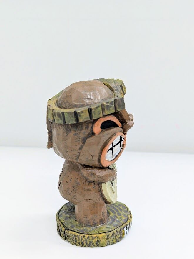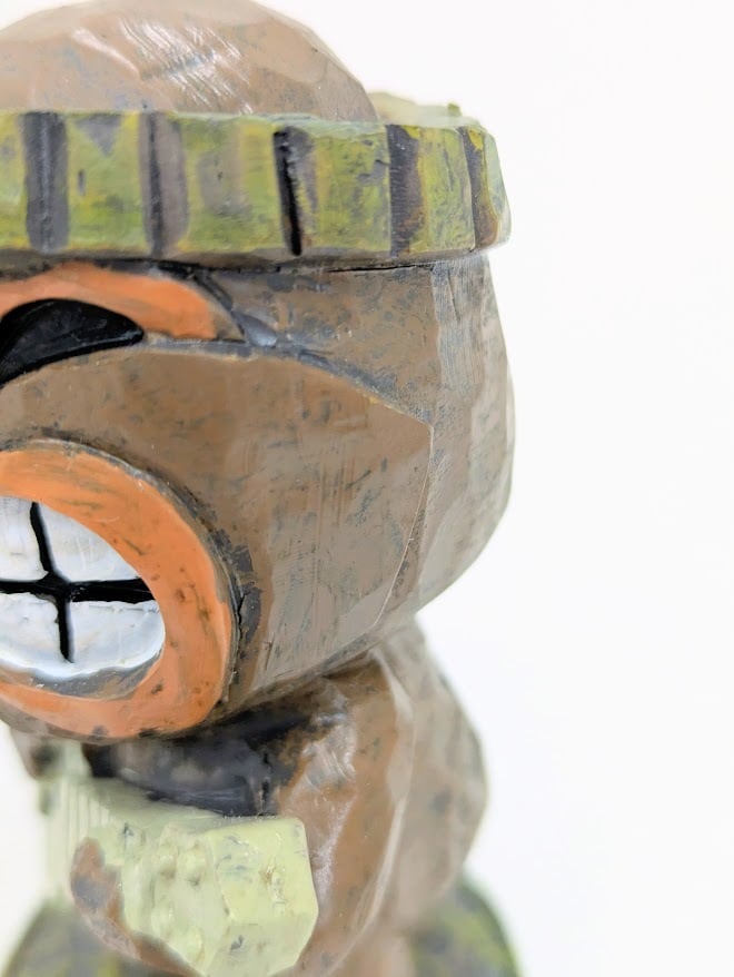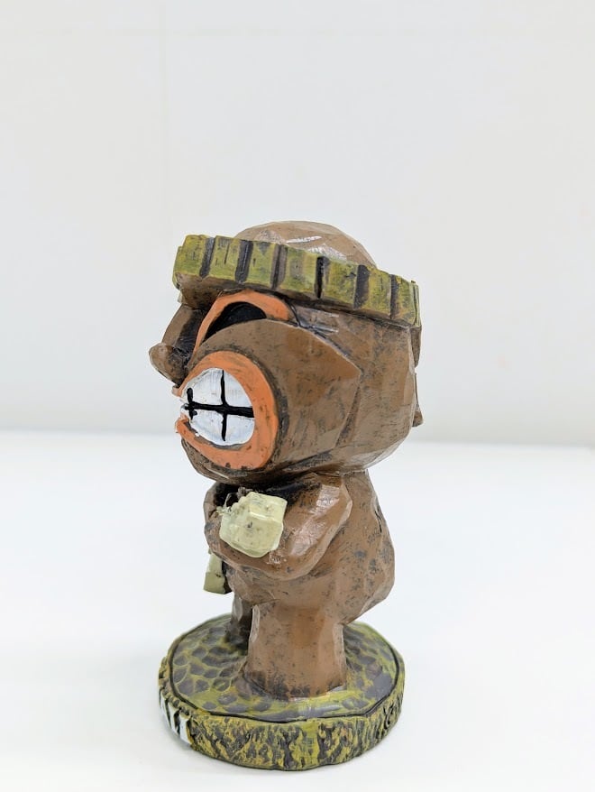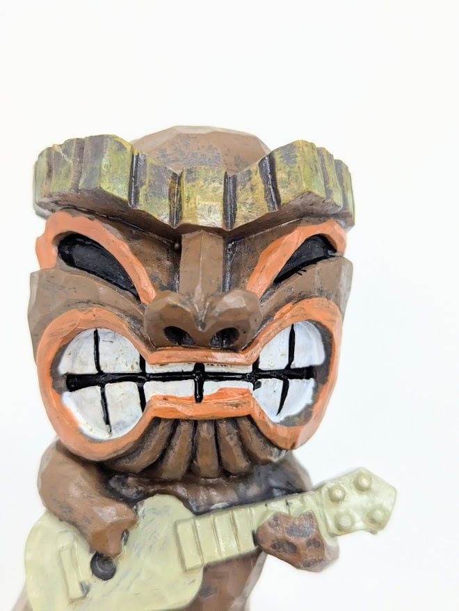 グッと食いしばった口元と、力強い目元。まるで一生懸命にハワイアンソングを奏でているような、健気でコミカルな表情がたまらない一体です。