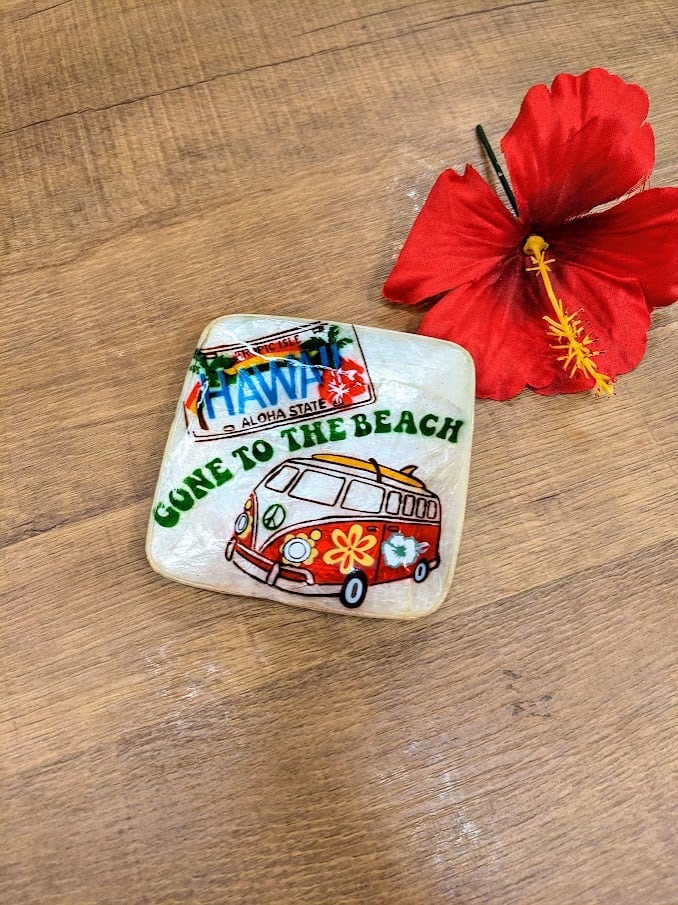 海でとれたカピス貝を加工し、プリントを施したミニトレイ☆