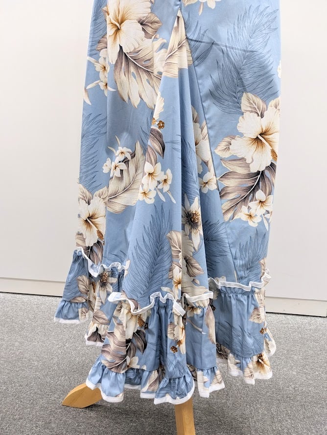 【PACIFIC LEGEND】ハワイアンロングラッフルムームードレス(ハイビスカス/ブルー)