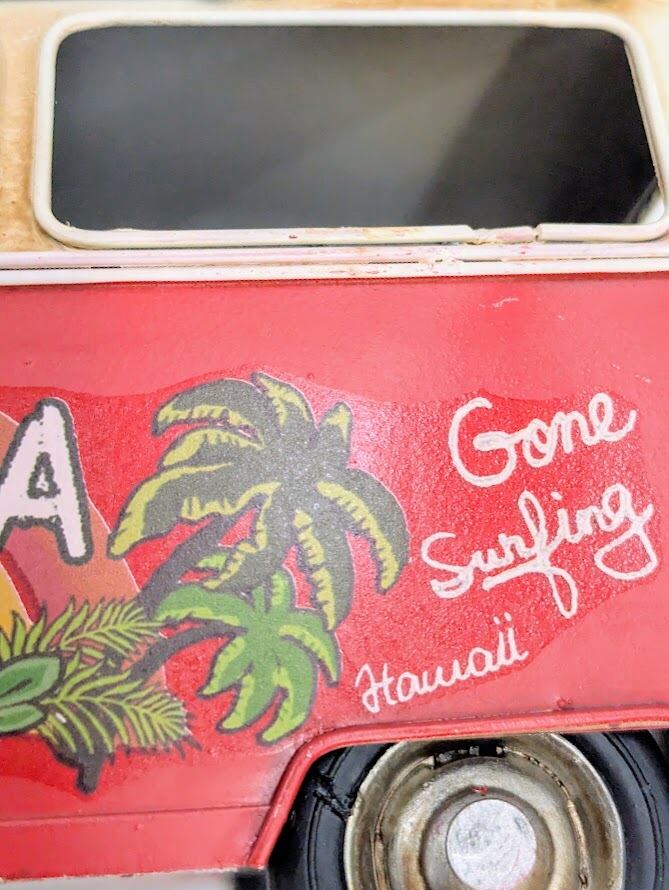 ラクガキ風なメッセージは「gone surfing(サーフィンに行ってます)」というローカルなHAWAII LIFEを感じさせるデザインです。