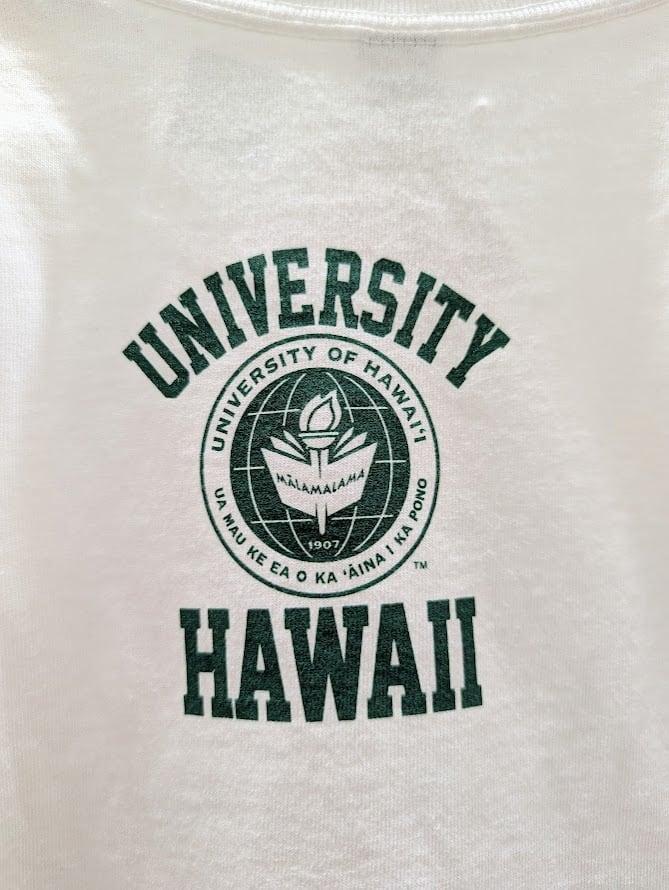 アメリカ合衆国ハワイ州の州立大学である、ハワイ大学の「UHロゴ」入りTシャツです。